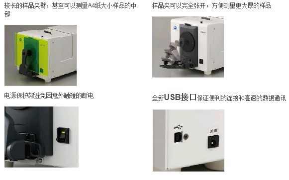 | 可選配件 | 透射樣品夾CM-A96,透射零位校正板CM-A100, 比色皿CM-A97、98、99,塑料比色皿CM-A130、131、132 色彩管理軟件CM-S100w |