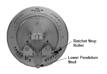 鐘擺在10-100挺度單位且沒有加砝碼的情況下被校準的。增加砝碼可以改變范圍。參見Set Up Chart表格的Range Weight范圍砝碼可知應(yīng)加砝碼。測量范圍的砝碼裝在鐘擺下端的柱栓上(圖6)。另外,在選擇測量范圍的時候,屏幕上也會顯示所需的砝碼。