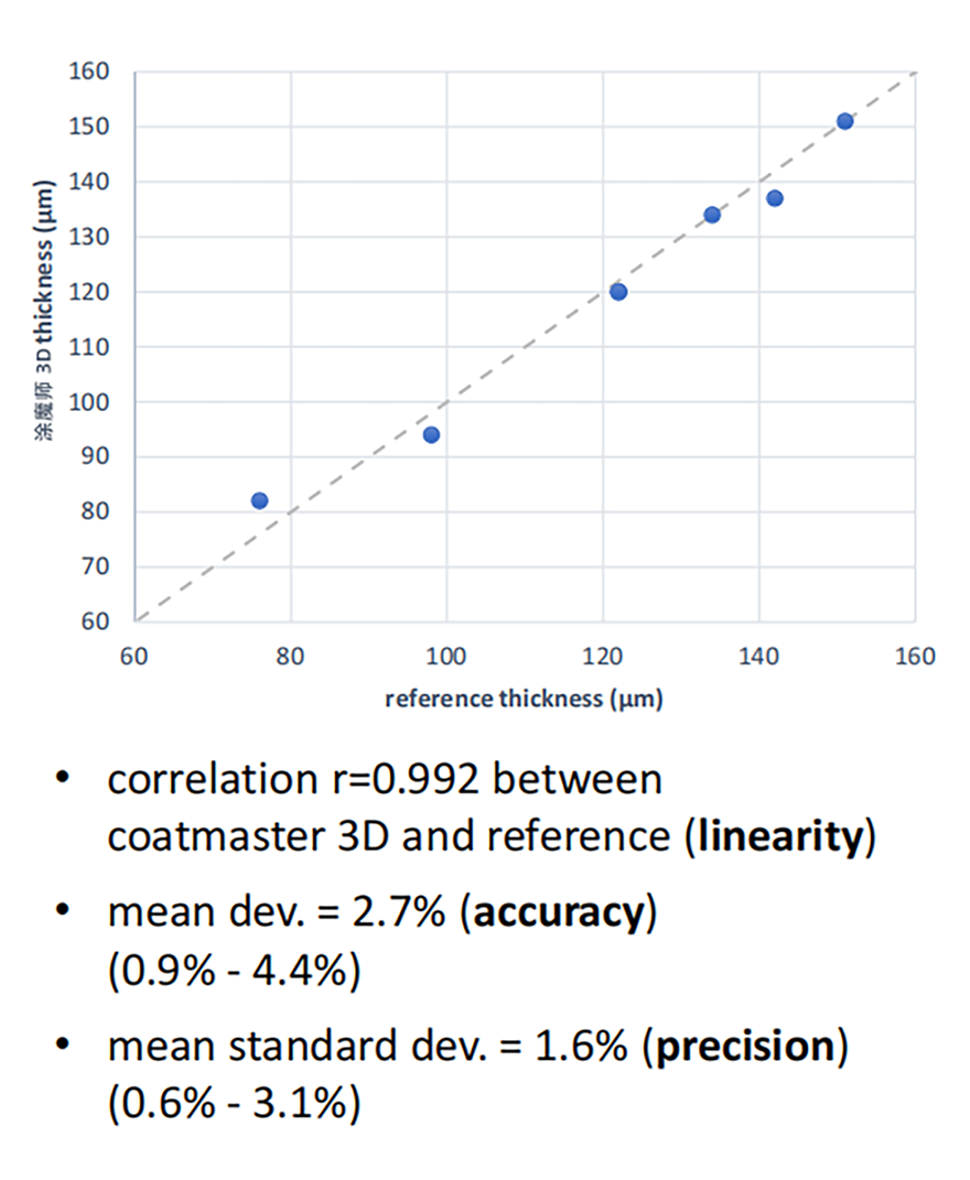 對(duì)于電芯棱角處的絕緣涂層測(cè)厚,過往的測(cè)厚方法只能通過測(cè)出側(cè)平面的涂層厚度,再根據(jù)相關(guān)性預(yù)估棱邊處的絕緣涂層厚度。但研究表明,由于涂料表面張力、涂層固化參數(shù)、邊緣曲率和噴槍的空間噴涂模式等因素影響,側(cè)面與棱邊涂層厚度呈現(xiàn)很弱的相關(guān)性。意識(shí)到該問題后,各大電池制造商更關(guān)注電芯的棱邊、R角的涂裝工藝和質(zhì)量。