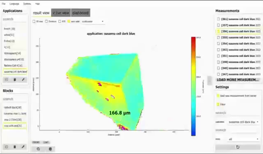 4、 測(cè)試視頻,軟件可提前選擇ROI, 或移動(dòng)鼠標(biāo)可更細(xì)致觀察涂層厚度分布情況