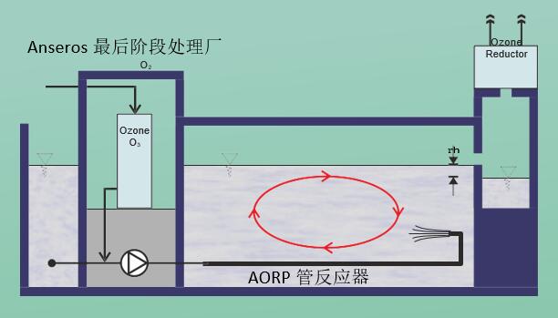 Anseros 開發(fā)了一款臭氧溶于水的反應(yīng)器,叫AOPR管反應(yīng)器,是專為湍流管流動(dòng)設(shè)計(jì)的(德國(guó)批準(zhǔn)專利:DE10201037B4)。相較于傳統(tǒng)的層流氣體擴(kuò)散器系統(tǒng),如鼓泡塔,它在AOPR管反應(yīng)器中的轉(zhuǎn)化率顯著提高,高臭氧濃度使用時(shí)也不會(huì)有放氣損失。這個(gè)AOPR管反應(yīng)器非常節(jié)能。 污水處理廠內(nèi),大量的污水只能水平流出,所以就不需要增加地面高度。因此,容器的深度可以保持很低。從AOPR管反應(yīng)器流出的水會(huì)在容器中形成一種攪拌的效果,而且這種效果具有可控性。在下水道中的溶解殘留臭氧量應(yīng)該盡可能地低。為此,Anseros已發(fā)了一個(gè)名為Ozomat WP的臭氧濃度測(cè)量?jī)x器。