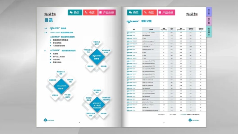 Ceronas GmbH & Co.KG 是一家生產(chǎn)微粉蠟添加劑的生產(chǎn)商和開(kāi)發(fā)商,旗下品牌 mju:wax® 銷(xiāo)售微粉蠟、氧化的 VISCOCER® 蠟和聚合物,以及創(chuàng)新的添加劑,如離子聚合物、改性聚酯蠟和功能化的ADDIMER® 蠟混合物。Ceronas 的添加劑廣泛應(yīng)用于涂料、粉末涂料、油墨、清漆、塑料、母料、脫模劑、潤(rùn)滑劑、蠟乳液、蠟分散體等多個(gè)工業(yè)領(lǐng)域。